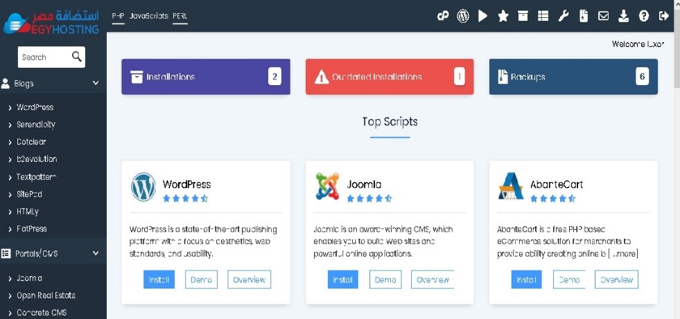 افتح لوحة تحكم الاستضافة وابحث عن Scripts