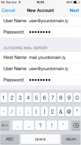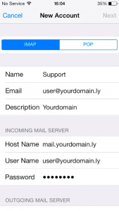 • iPhone, iPod, Settings, Mail, IMAP, Accounts, ايفون, Password, POP, Incoming Mail Server, البريد الالكتروني