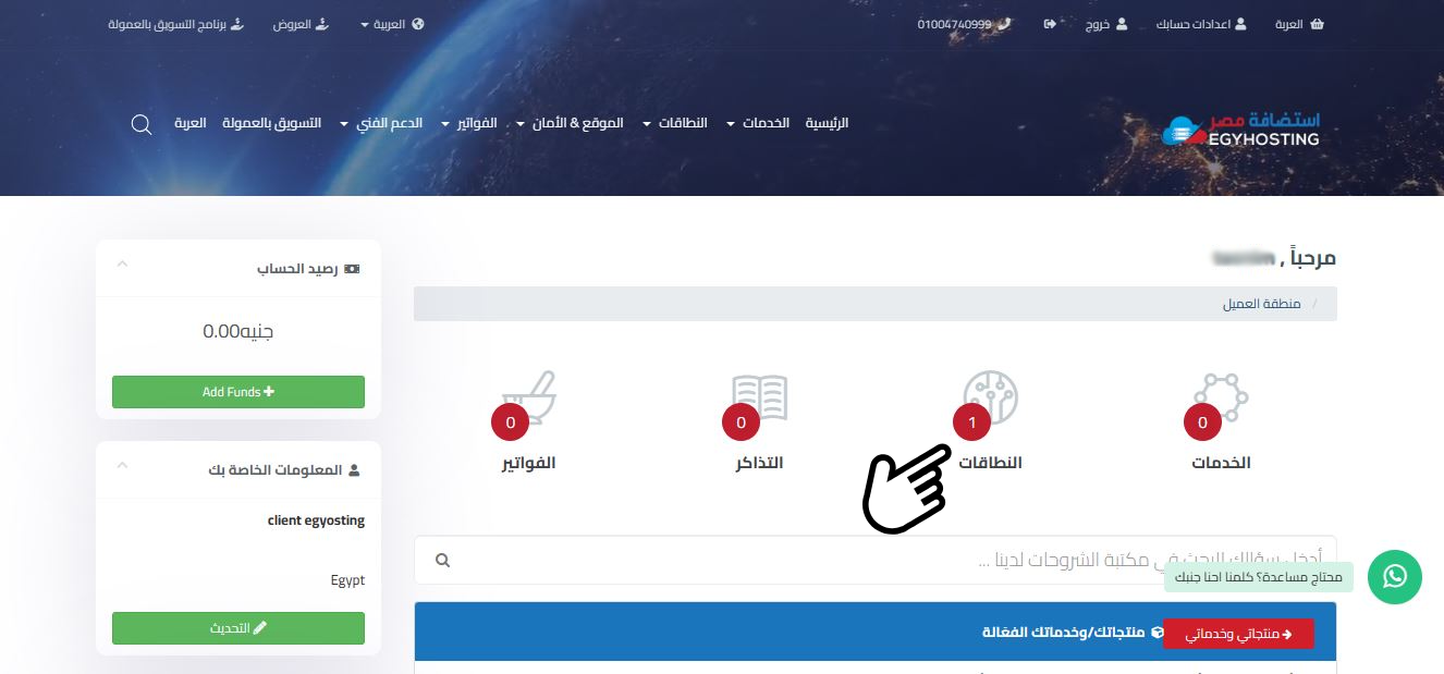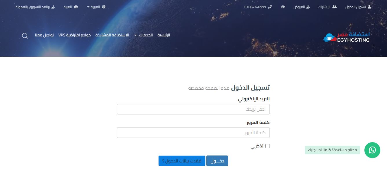 ادخل إلى حسابك على موقع EgyHosting باستخدام اسم المستخدم وكلمة المرور الخاصة بك.