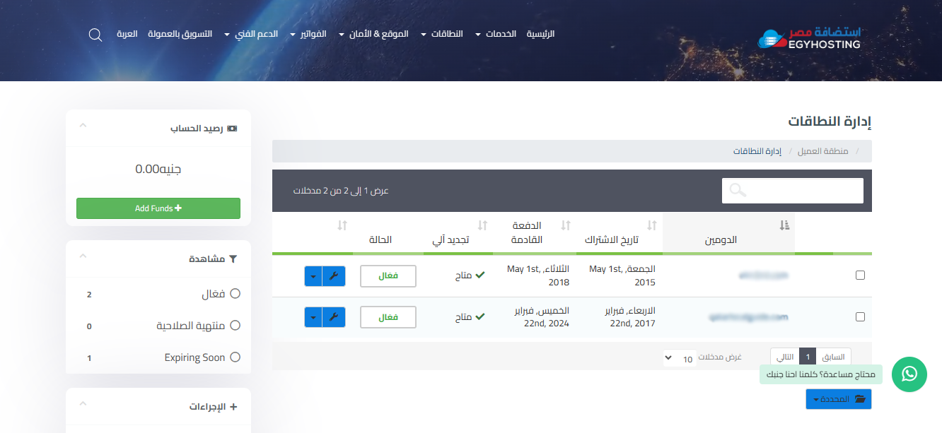 2. انتقل إلى الدومينات (النطاقات )الموجودة في حسابك