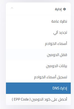 3. اختر الدومين الذي تريد ربطه بالاستضافة ثم اضغط علي إدارة DNS  من قائمة إدارة